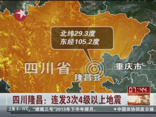 四川消息据国家地震台网测定,北京时间11 月11 日8时58 分, 在四川省内江市隆昌县(北纬29.3 度,东经105.2 度)发生4.3 级地震,震源深度约11 公里。震中距离隆昌县约10 公里,距内江市区约30 公里, 距成都市约185公里,距重庆市约135 公里。11 月10 日22 时19 分,11 月11 日6 时01 分,该地区相继发生4.0 级、4.2 级地震。