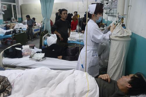 当日凌晨发生的吉林省桦甸市夹皮沟镇老金厂金矿事故又发现一名遇难矿工,遇难者人数增至10人,28名受伤人员中绝大多数伤势稳定,已经脱离生命危险,但仍有一名伤者伤势严重,呼吸道严重灼伤,经专家会诊后,已转往吉林市化工总医院。新华社记者 林宏 摄