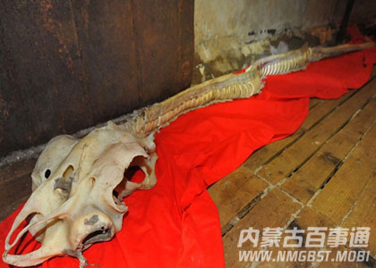 记者随后在罗家营社区的一家大型冷藏库中见到了这具奇怪的骨骼。骨骼十分完整,有头骨、椎骨、尾骨,除了中间部分断开外,其他部分都连接十分完好,整个身长约在4米左右。其中,头骨前部有四支两两相连的细骨,两侧则有拳头大小的空洞,上部分有三个小洞;椎骨则呈圆形,中间是实心的,记者用手试了试,发现骨头十分沉重;尾骨部分的一侧并排有40根左右长短不一的骨头,类似于扇子形状。
