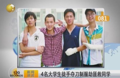 合肥4名大学生徒手夺刀制服劫匪救同学